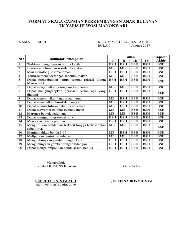 Contoh Dokumen Penilaian Perkembangan Anak Paud Dokumen Cute766