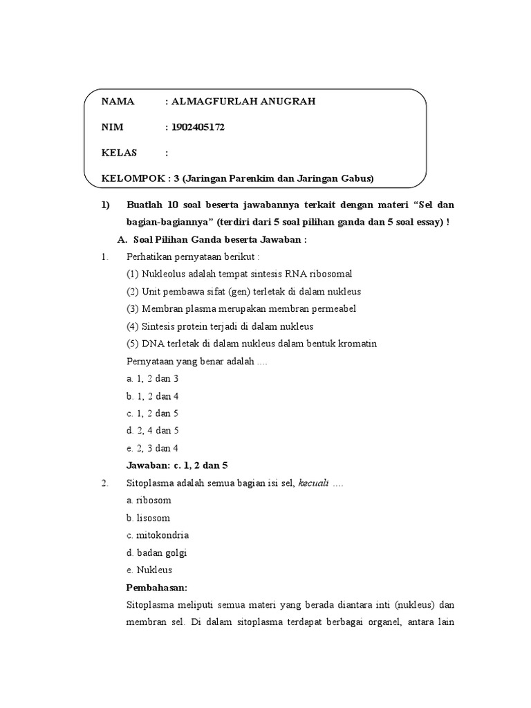 Soal Tentang Sel Beserta Jawabannya